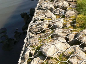 应用:石笼网可用于边坡支护、基坑支护、山体岩面挂网喷浆、边坡植生(绿化)、铁路高速公路隔离护拦网,它还能制成箱笼、网垫,用于江河、堤坝及海塘的防冲刷保护,水库、河流截流用网箱。河流最严重的灾害是水流冲刷河岸使其破坏,引发的洪水泛滥,导致生命财产遭受大量损失和大量水土流失。因此在处理上述问题时侯,格该生态格网结构的应用成为最佳的解决方案之一,它能使河床河岸得到永久性保护。